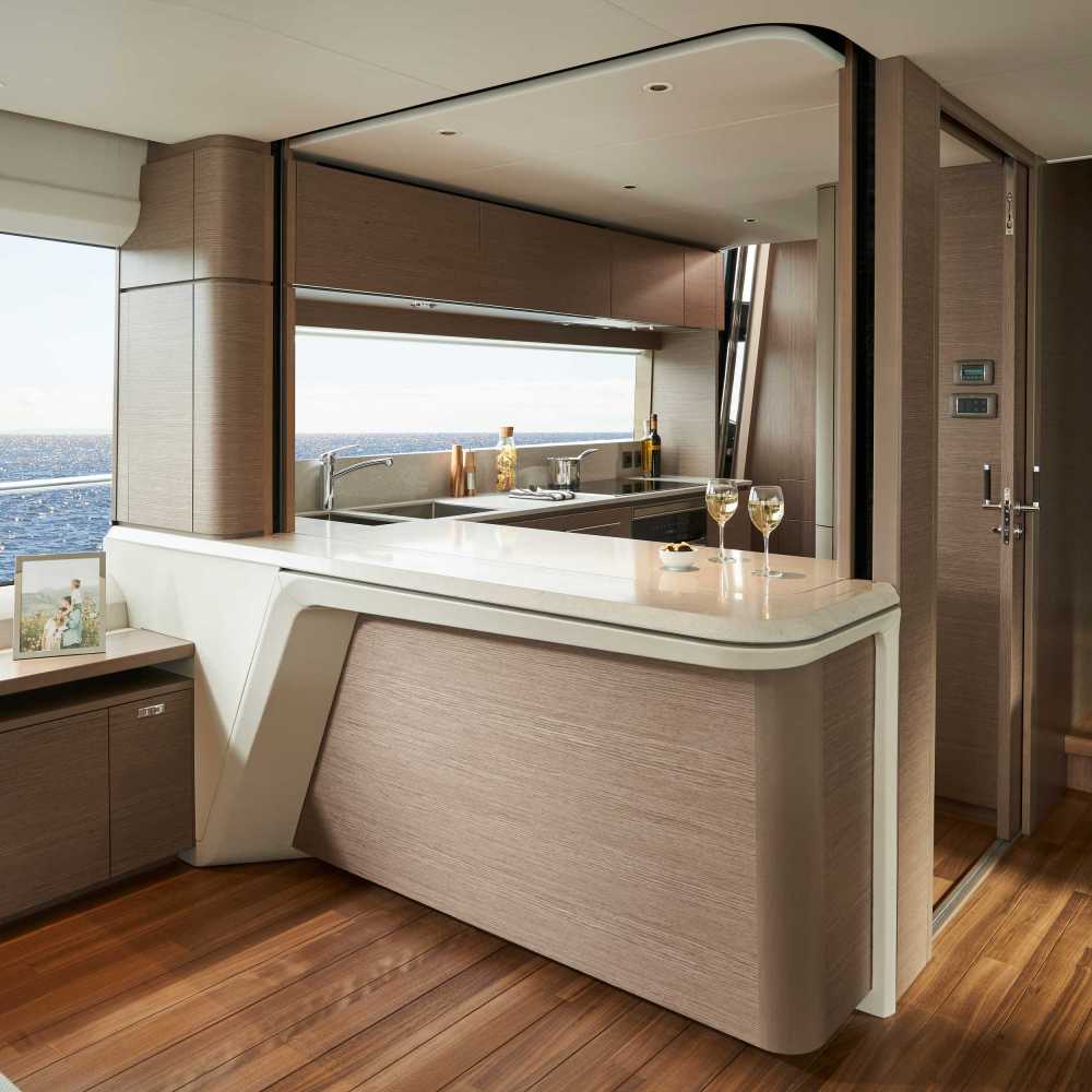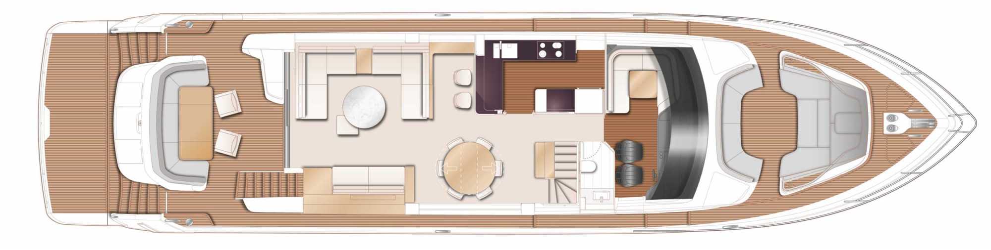 “See on tehtud nii peenelt, et enamik külastajaid ei pane tähelegi,” sõnab Princess Yachts America asepresident James Nobel. “Ka salongidiivanite seljatoed on madalad, nii et külalistele avaneb istudes oivaline vaade. Sellel alusel pole ühte parimat kohta, kõik on ühtviisi head.”